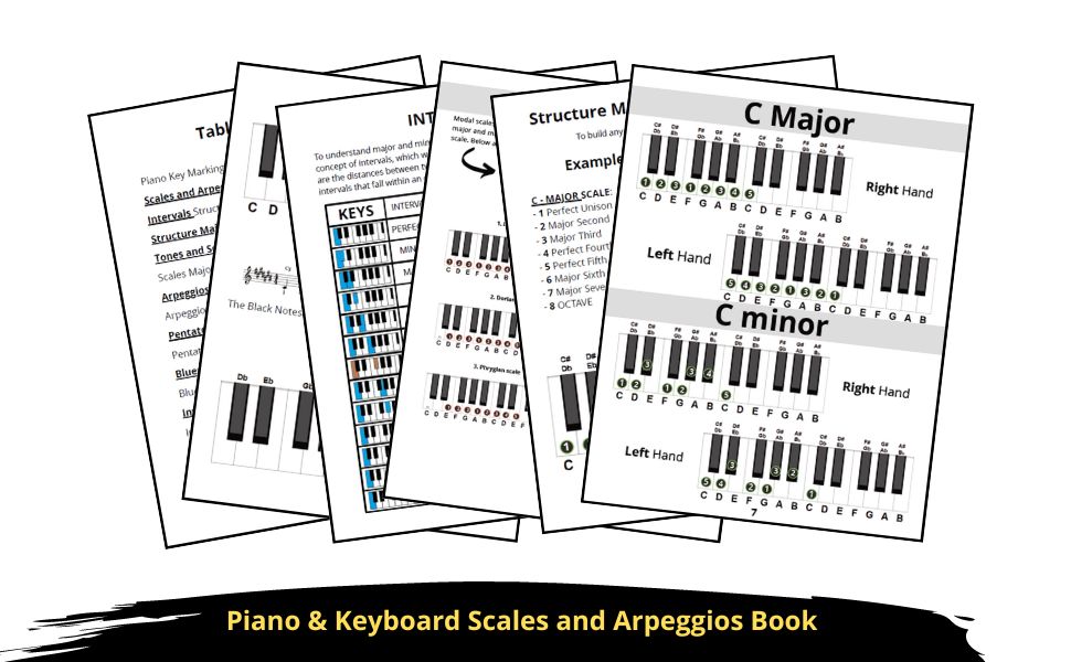 Piano & Keyboard Scales and Arpeggios Book, Practice Diagrams Step by Step: Fundamentals of Piano Practices, All the Major, Minor (Pentatonic, Blues and Modal Scales) Simple Music Theory