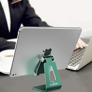 The CreaDream Adjustable Cell Phone Stand in Midnight Green is a CNC-machined aluminum desktop dock designed for universal compatibility with 4-10 inch smartphones and tablets. Featuring a 270-degree multi-angle rotating shaft, widened hooks for case-friendly grip, and anti-slip rubber pads, it offers a sturdy, scratch-free, and ergonomic hands-free experience ideal for office, home, or travel use.