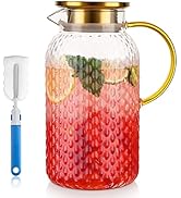 Glass Pitcher - 105.6oz Fruit Infuser Water Pitcher with Removable Lid and Precise Scale Line , 18/8 Stainless Steel Iced Tea Pitcher, Easy Clean Heat Resistant Infusion Pitcher for Cold Hot Beverages