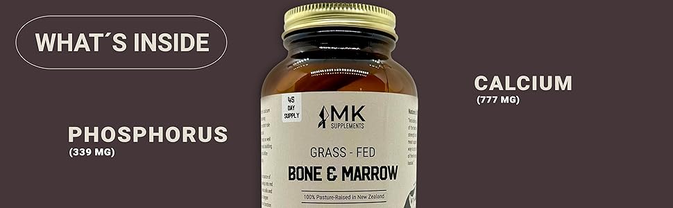 MK Supplements Grass-Fed Beef Bone & Marrow delivers 3,000 mg per serving of freeze-dried, non-GMO, regeneratively-raised beef bone and marrow. This premium supplement supports healthy joints, bones, teeth, and immune function with a potent blend of calcium, phosphorus, and stem cells. Lab-tested for purity and free from additives, it comes in eco-conscious glass packaging for 45 days of clean nutrition.