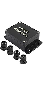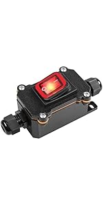 The VONVOFF Waterproof Inline Cord Switch is a robust DPST toggle switch rated for 20A at 125V and 16A at 250V, designed for heavy-duty outdoor use. Featuring an IP65 waterproof rating and a flame-retardant, temperature-resistant PC shell, it ensures safe, durable operation in harsh environments. Its red illuminated rocker button provides clear on/off status, while the two-side entry design with wire-grip membranes guarantees a secure, water-resistant installation ideal for powering high-current outdoor appliances and equipment.