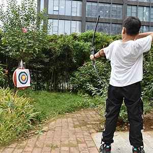 The RunzkzyBow and Arrow Beginner Archery Set is crafted with high-strength fiberglass limbs and a durable ABS resin handle, designed for ambidextrous use. This lightweight, portable set includes 6 metal arrows, a quiver, target papers, and protective gear, making it the perfect all-in-one package for teens to develop focus, coordination, and confidence in backyard or outdoor archery practice.