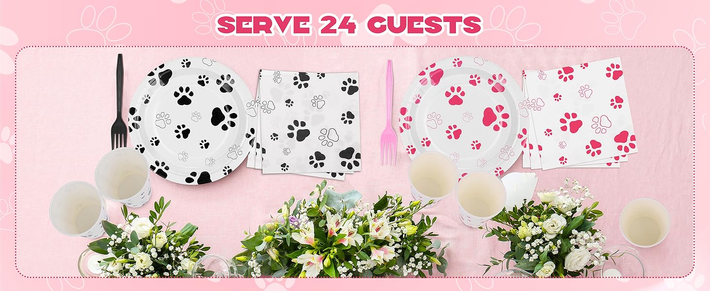 144 Pieces Black Paw Print Party Tableware Sets Including Disposable | Desertcart Kyrgyzstan