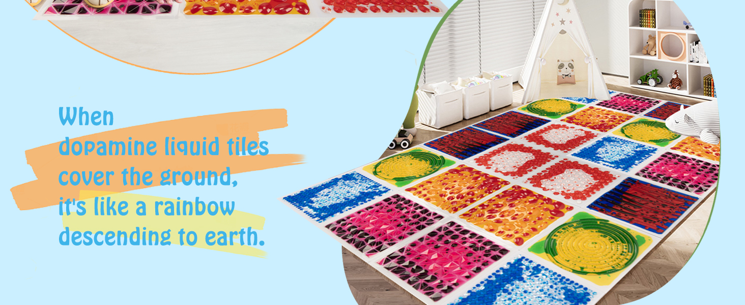 Art3d’s 11.8”x11.8” textured liquid sensory flooring tiles offer an interactive, calming play experience with dynamic liquid movement that stimulates tactile and visual senses. Designed for durability and safety with anti-slip, waterproof materials, these 6-piece sets support educational and therapeutic use across diverse environments.