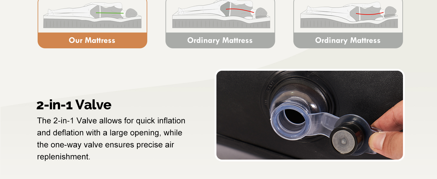 This mattress feels like it was made in the 90s. There is no way to securely close the vents. You just push it in and hope for the best. Also, for a mattress this price, you would expect it to have a built-in air pump. This one doesn't. There are other mattresses on the market that has a built-in air pump that costs less than this one. The cord for the included air pump is also super short. You'll need to be next to an outlet to use it.Most importantly, this mattress couldn't hold air at all. I followed the instructions on the product description, which wasn't on the actual manual with the product. I filled it up to about 80%, which was also super hard to gauge. I left it over night, about 8-9 hours. Then in the morning I inflate it fully. It was super comfortable when inflated. I then took a nap on it and woke up 2 hours later to find myself sunk half way down. Half the air had been completely depleted. I couldn't hear any air coming out, nor can I find it anywhere. I checked the the vent holes and there is no air coming out. I even had my wife sit on the mattress while I check. I don't know where the air is coming out of. Just a bad design. It's unfortunate, because it was pretty comfortable when inflated. Just wish it was designed better with no air loss. I was hoping to take this camping. Good thing I tested it before I took it out.