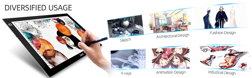 The Zecti A4 Portable LED Light Box is an ultra-thin, lightweight tracing pad featuring 6 adjustable brightness levels with flicker-free LED technology. USB powered for convenience, it supports a wide range of creative applications from sketching and animation to tattoo tracing and X-ray viewing, backed by an 18-month warranty.